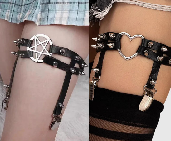 Unleash your inner gothic angel with these bold alt-aesthetic leg harness garters — the perfect mix of cute, dangerous, soft, and chaotic energy all at once (≧◡≦) ♡ Whether you choose the spiked straps, the heart-shaped buckles, the pentagram charm, or the multi-web harness, each design wraps your thighs in the most irresistible alt-girl magic ✨🖤.