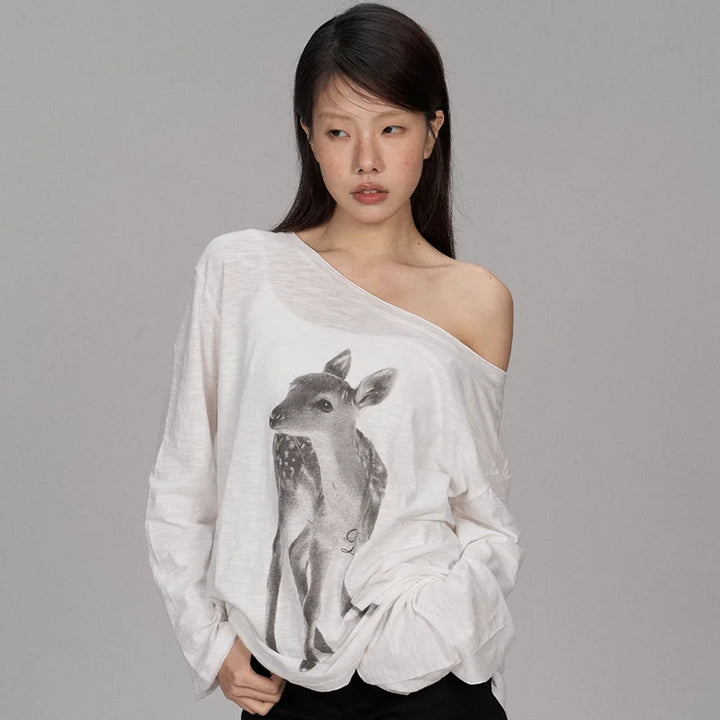 The Soft Fawn Oversized Tee is a dreamy, relaxed top designed for cozy cottagecore days and soft-girl outfits. Made with a lightweight, airy fabric, it drapes beautifully and gives that effortless off-shoulder look. The gentle fawn illustration adds a calm, woodland aesthetic that feels warm, minimal, and aesthetic.