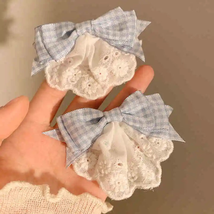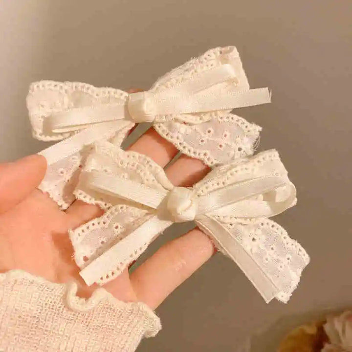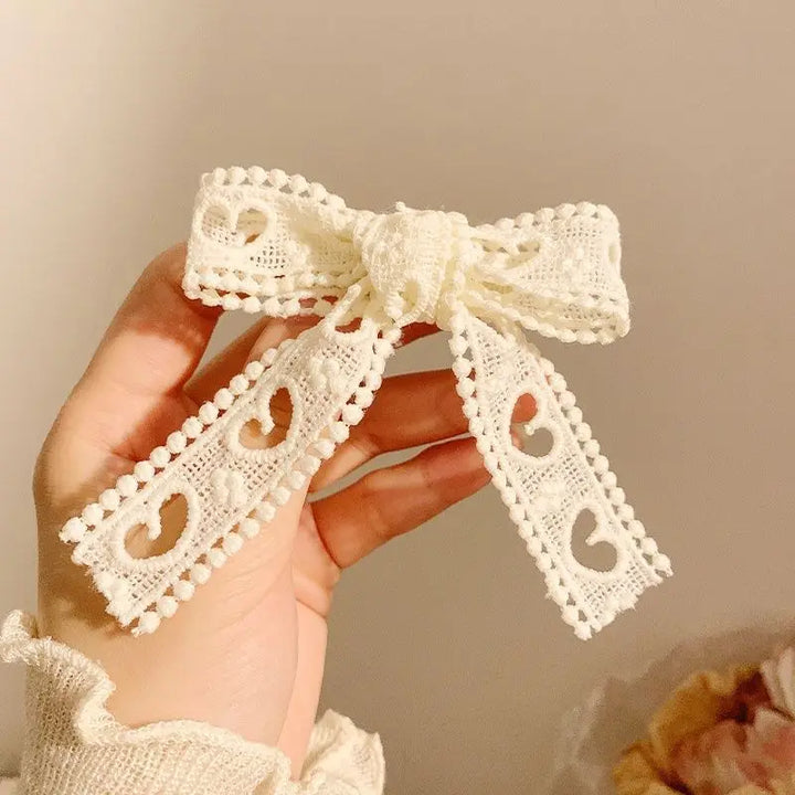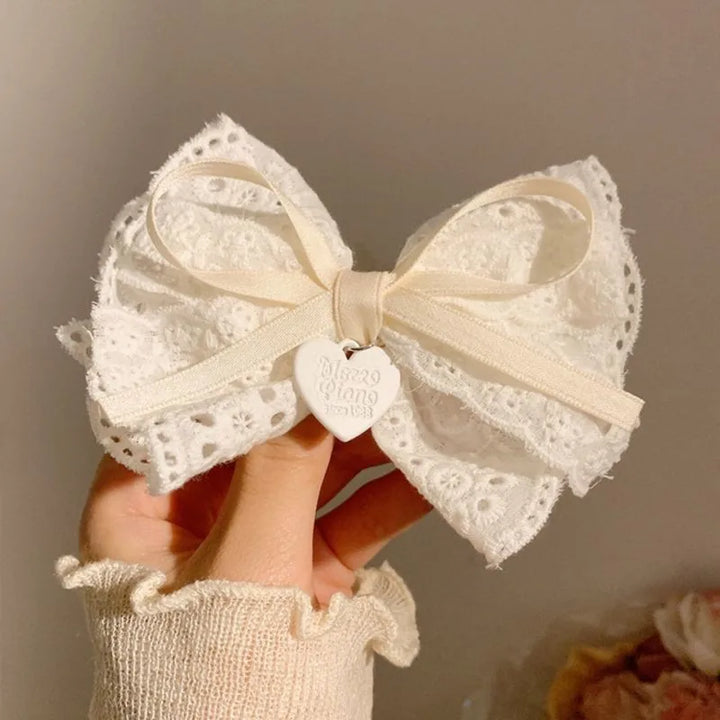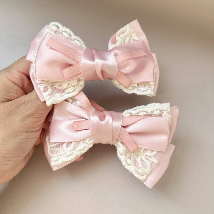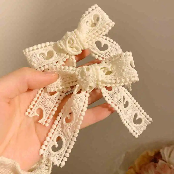 ₊˚⊹♡ Sweet Lace Heart Bow Hair Clips ♡⊹˚₊