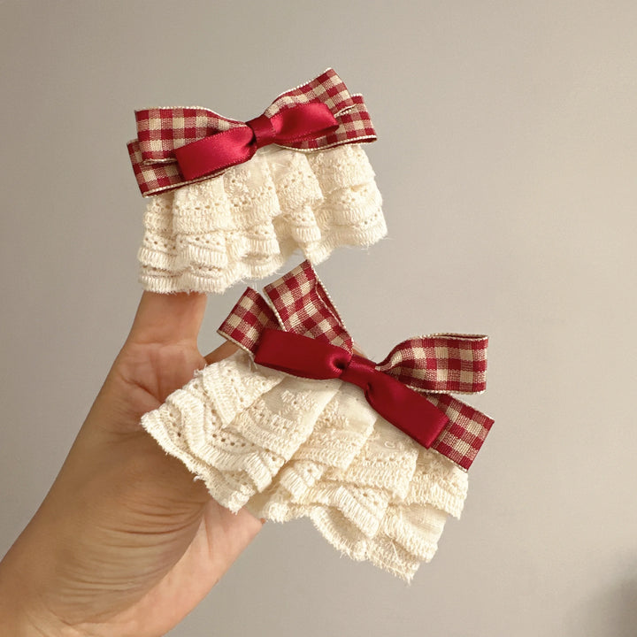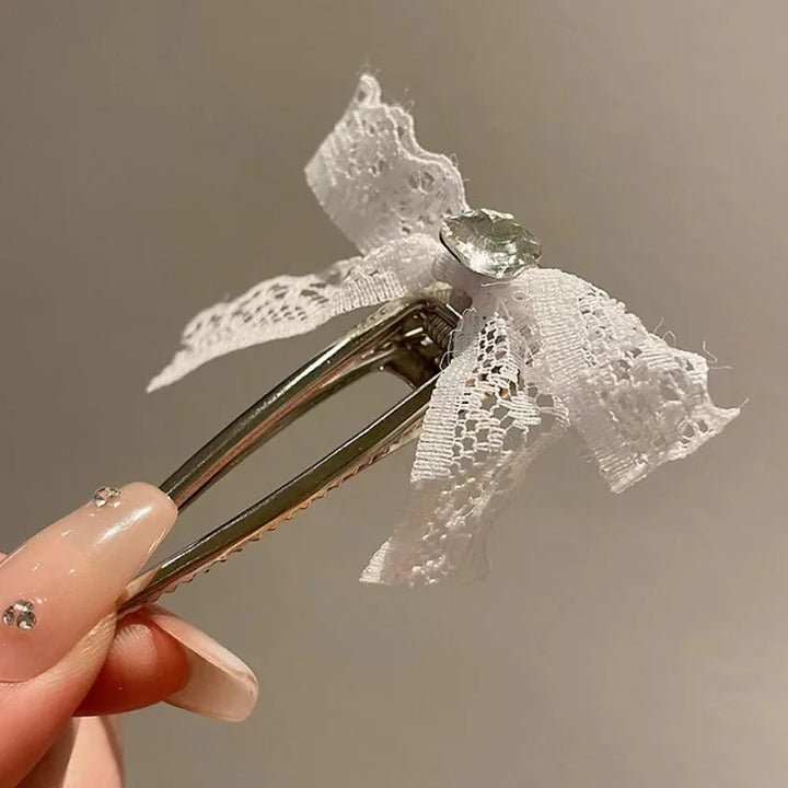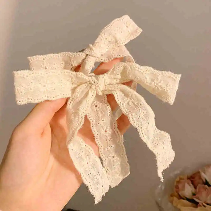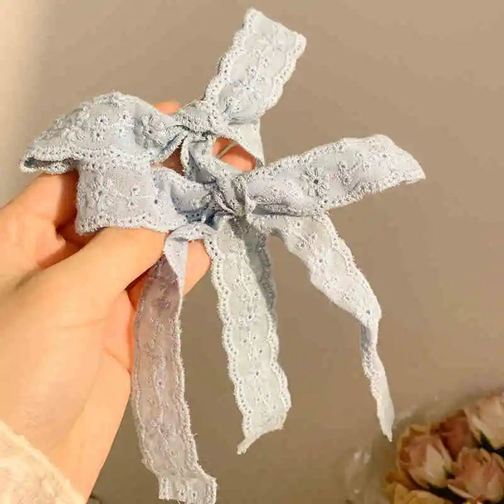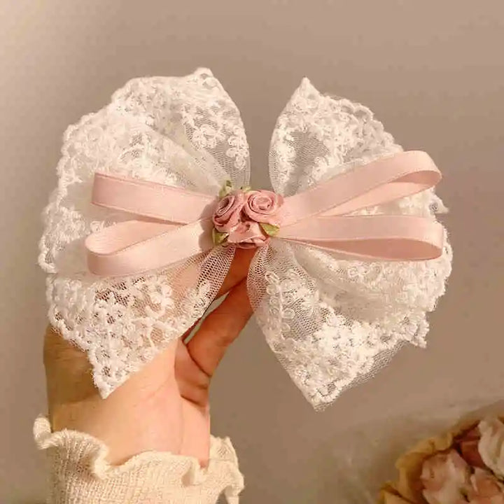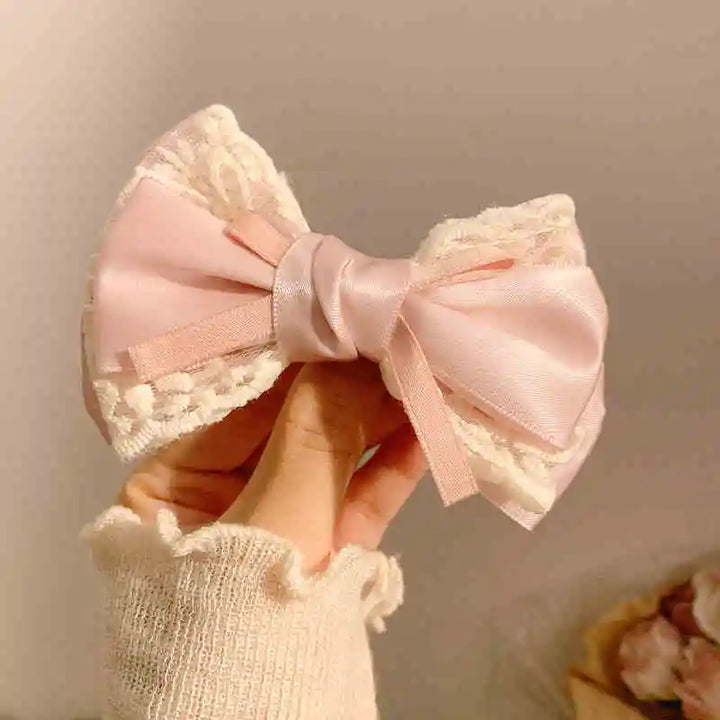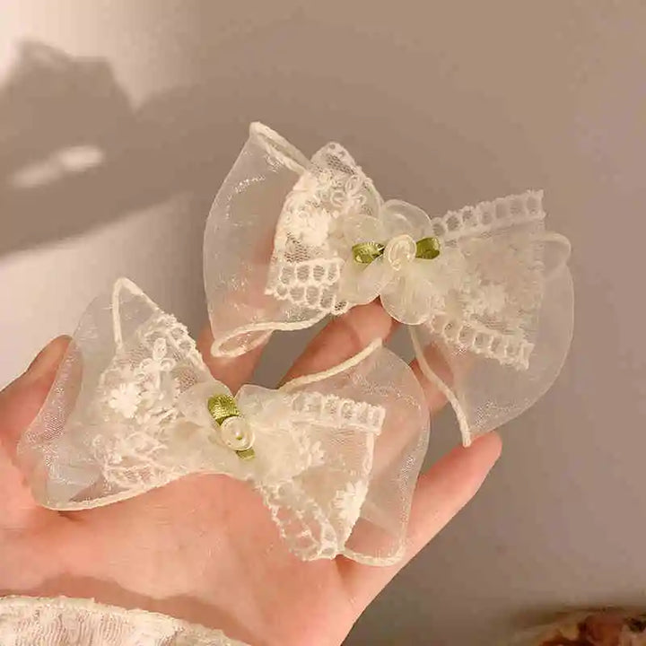 ₊˚⊹♡ Sweet Lace Heart Bow Hair Clips ♡⊹˚₊