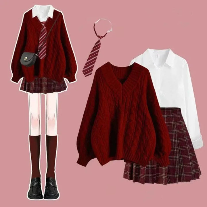 ✩₊˚♡ Autumn Scholar Knit Outfit Set ♡₊˚✩