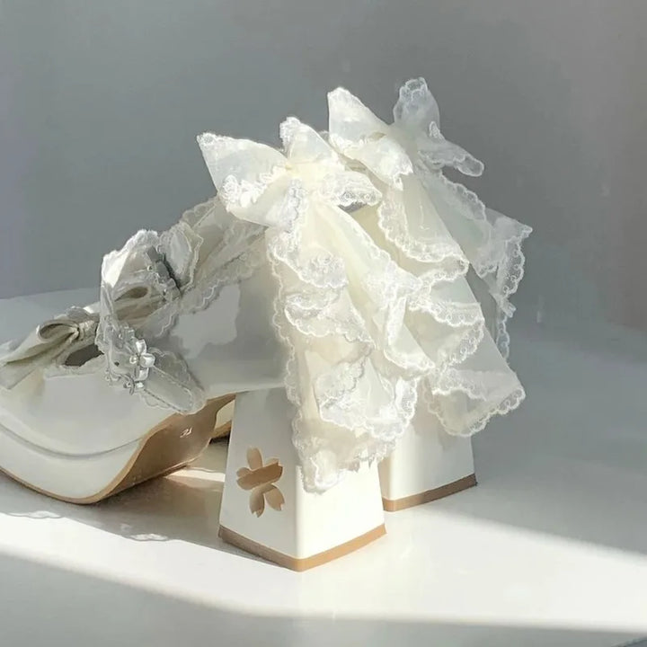 。.。:+* Style Tip *+:。.。 Pair them with lace socks or frilly tights for the ultimate royal look! (≧◡≦)✿ Whether you choose sweet pink or classic ivory, these heels will make you feel like a true fairytale princess.