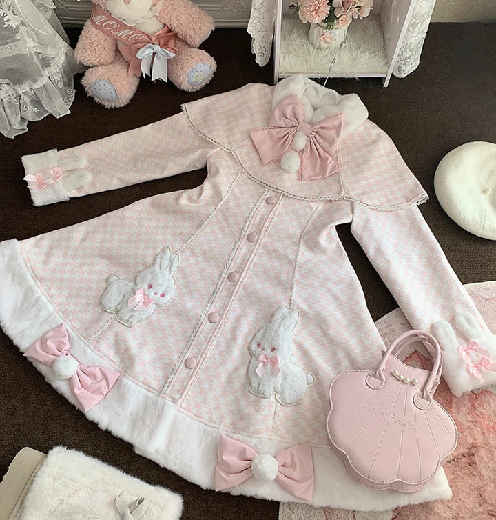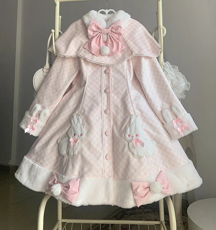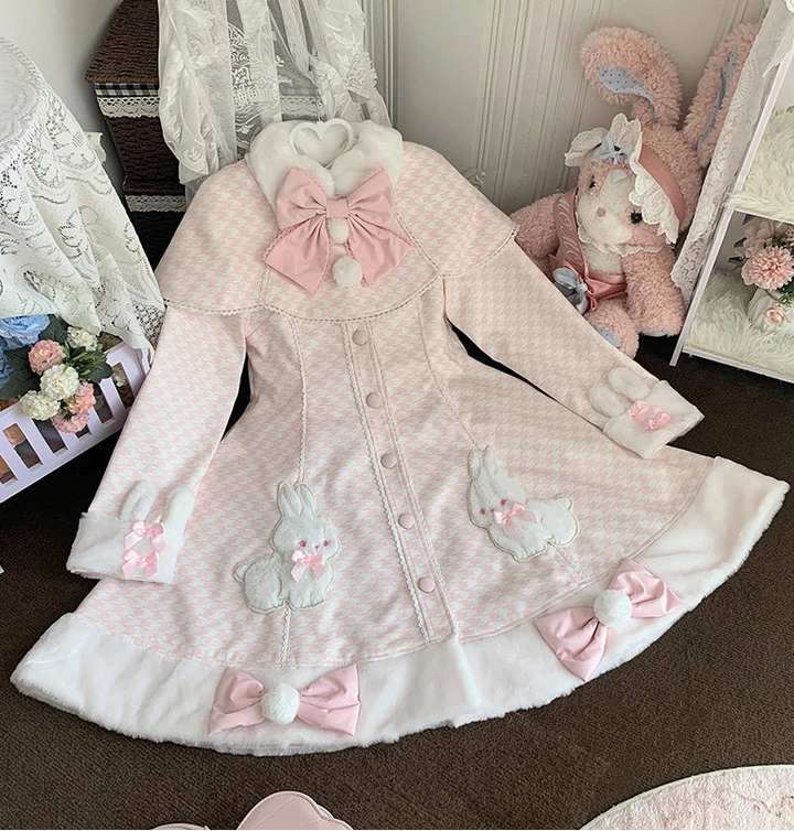 Step into a pastel wonderland with the Bunny Garden Princess Coat — a dreamy piece that feels like it came straight out of a fairytale (⸝⸝>ᴗ<⸝⸝)♡ Adorned with plush bunny appliqués, sweet ribbon bows, and soft fur trim, this coat captures the heart of coquette and kawaii winter fashion perfectly.