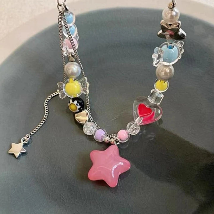 Whether you wear it alone for an elegant fairycore vibe or layer it with other dainty chains for a playful Y2K touch, the Celestial Dream Heart Necklace will always make you shine like a pastel star ☆彡