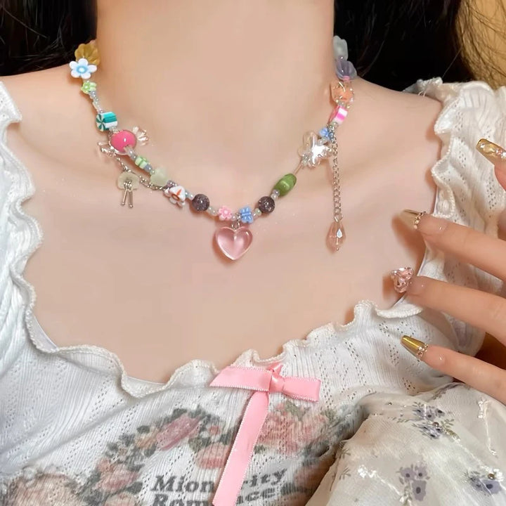 Step into a pastel wonderland with the ✧ Celestial Dream Heart Necklace ✧ — a shimmering statement piece that feels straight out of a fairytale (⸝⸝⸝ᵕᴗᵕ⸝⸝⸝)♡ Crafted with dreamy translucent beads, delicate flowers, and a sparkling heart charm at its center, this necklace captures the magic of starlit nights and sweet coquette charm.