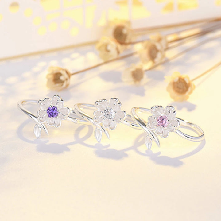 Bring the fleeting beauty of spring to your fingertips with this elegant Cherry Blossom Adjustable Ring. Designed with a shimmering purple crystal centerpiece surrounded by delicate petals, this piece reflects grace, renewal, and timeless charm. The open band design allows for an adjustable fit, making it both practical and enchanting. Perfect for daily wear, special occasions, or as a gift for someone dear. (⸝⸝⸝˘︶˘⸝⸝⸝)♡