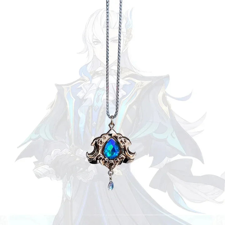 Carry the elegance of Fontaine with this stunning necklace set inspired by Furina and Neuvillette from Genshin Impact! Featuring beautifully detailed pendants with shimmering blue gemstone accents, these necklaces capture the essence of the Hydro Archon and the Chief Justice. Perfect for daily wear, cosplay, or as a collector’s keepsake.