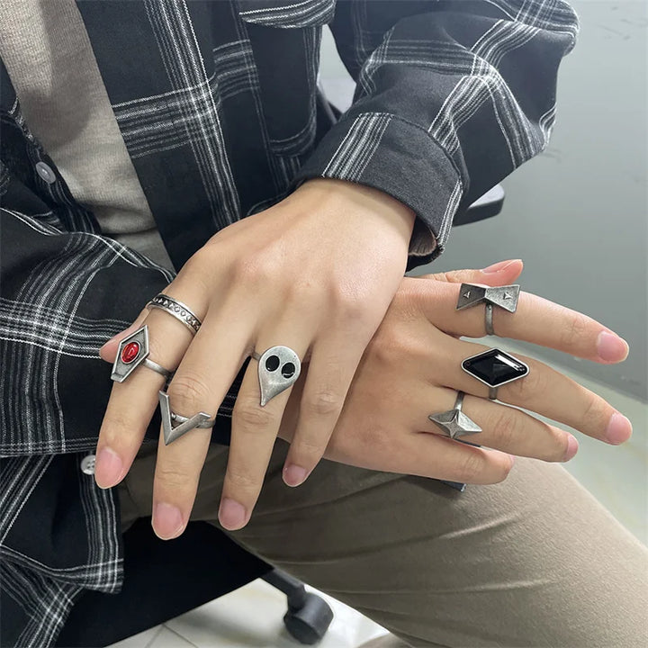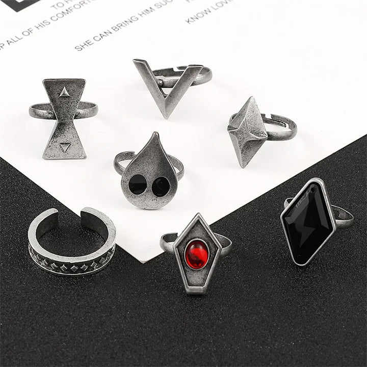 Channel the playful yet mysterious charm of Hu Tao with this stunning adjustable ring collection! Inspired by the Wangsheng Funeral Parlor’s 77th Director, these rings feature gothic designs with striking details, including skulls, red gemstones, and unique geometric shapes. Perfect for fans who love Hu Tao’s mix of spooky elegance and cheeky charm.