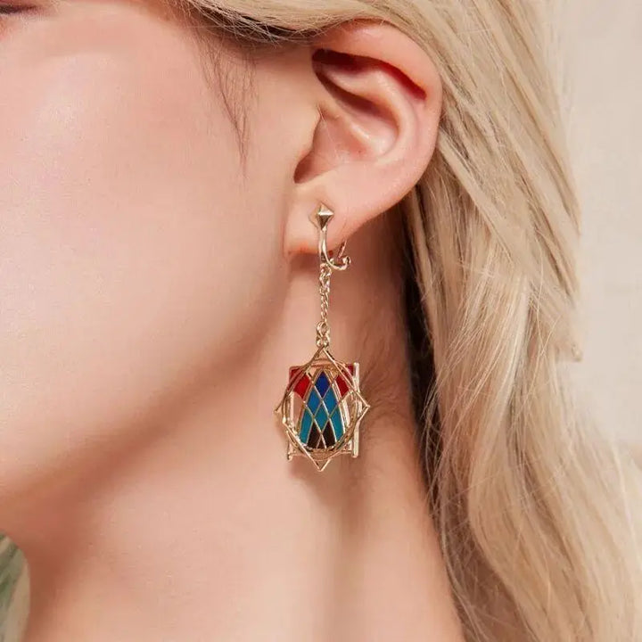 • Kaveh-Inspired Design – Gold-tone necklace and earrings featuring his signature color palette of red, teal, and gold.