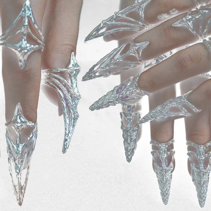 Step into dark fantasy with our Silver Dragon Claw Armor Nails — a show-stopping set of sculpted metallic claws designed to look like armor forged in another realm. Inspired by gothic royalty, cyberpunk warriors, and dragon mythology, these nails aren’t just accessories — they’re miniature battle-ready talons for your fingertips (✿◠‿◠) designed for those who want their style to radiate power, mystery, and villain energy.