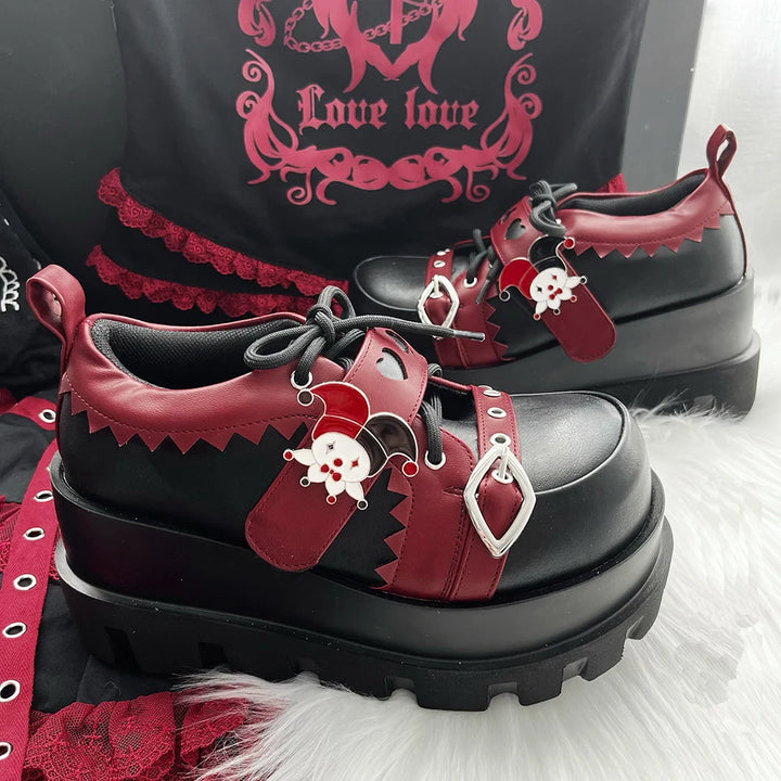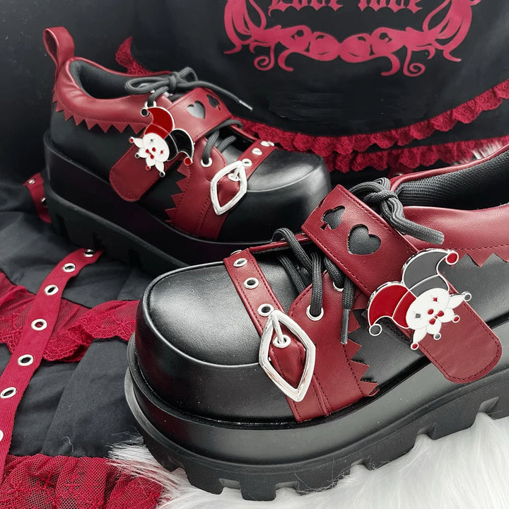 (ノ≧ڡ≦) Style Tip: Pair with lace socks, fishnets, or leg warmers for the ultimate gothic doll look. Available in deep Crimson Red and bold Midnight Black, these platforms are the perfect balance of spooky & kawaii!