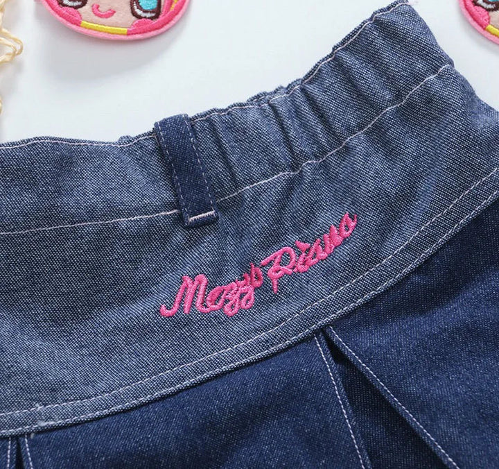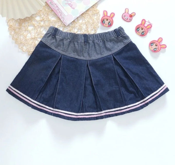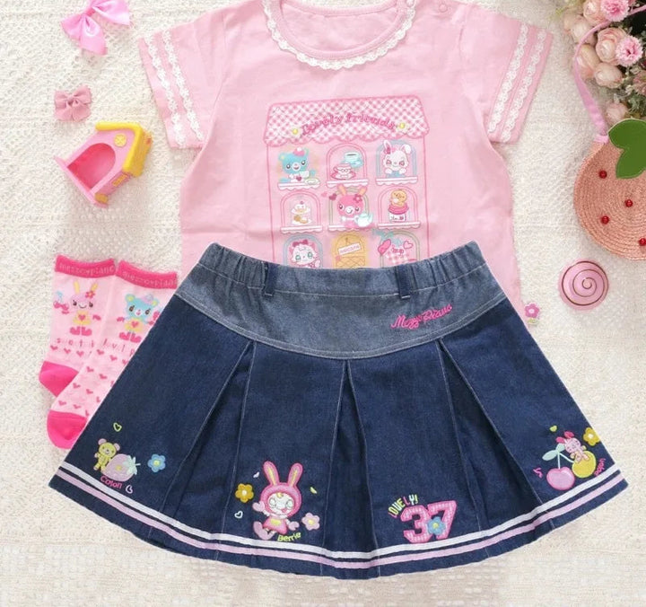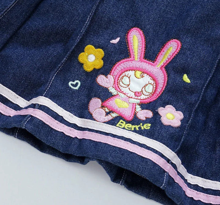 🎀🌟 Star Bunny Pleated Denim Skirt 🌟🎀