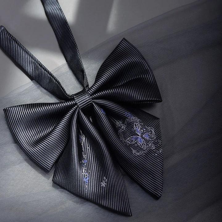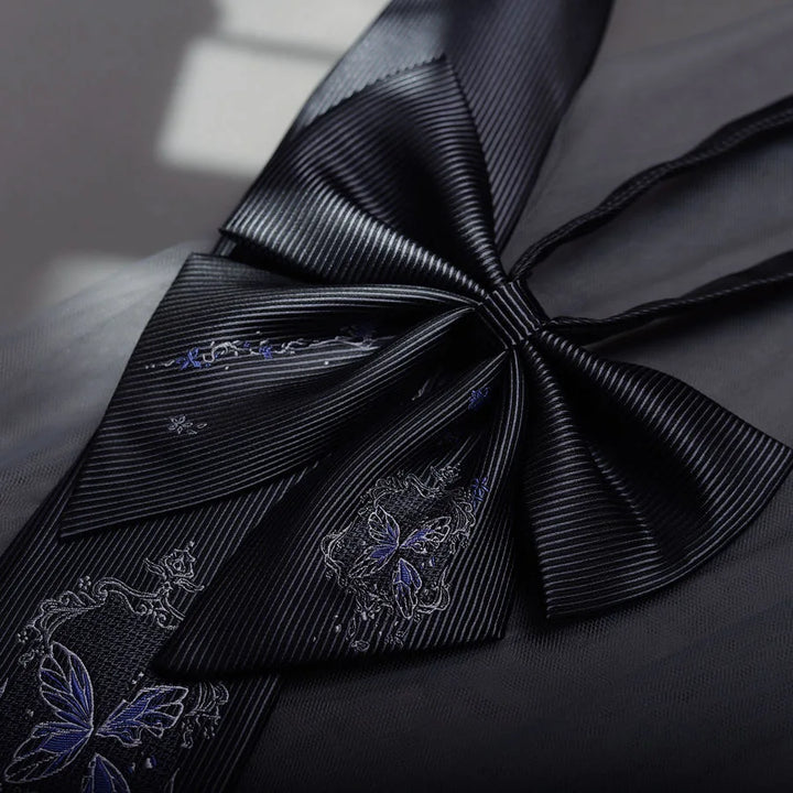 Step into a twilight dream with our Midnight Enchanted Butterfly Tie Collection — a captivating lineup of black satin ties and bows adorned with delicate purple butterflies and ornate embroidery. Inspired by gothic romance, moonlit gardens, and soft fantasy aesthetics, these ties aren’t just accessories — they’re miniature works of art for your wardrobe (✿◠‿◠) designed for those who want their outfits to radiate mystery, elegance, and a touch of magic.