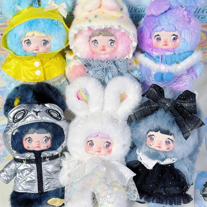 • Colorful Variety – From pastel umbrellas to fluffy cloud hats and bunny-eared coats, every plush has its own tiny world of details.