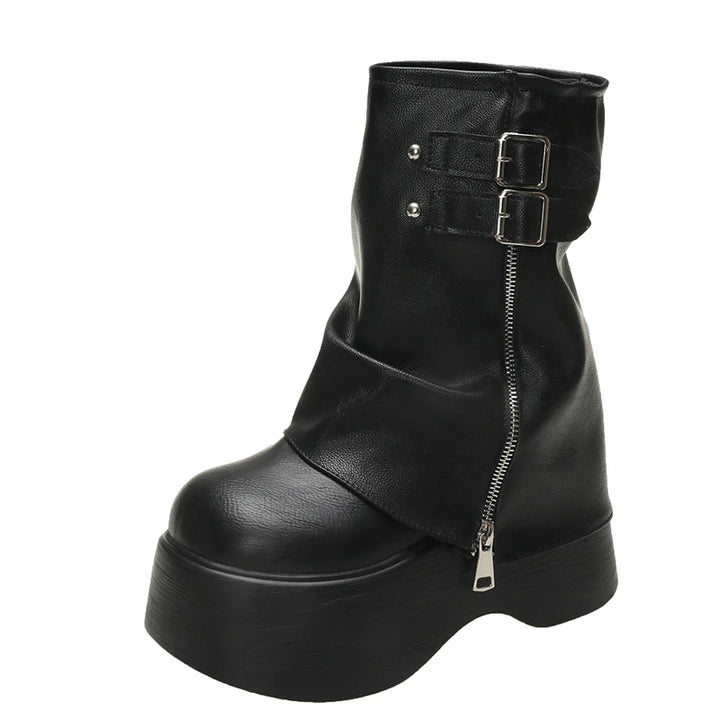Step into the spotlight with the Oblivion Rise Platform Boots—where grunge edge meets high fashion. (≖‿≖✧) These daring boots combine oversized platforms with a slouched leather design, giving you an instant boost of height and attitude. Finished with zipper + buckle details, they’re the perfect mix of rebellion and runway.