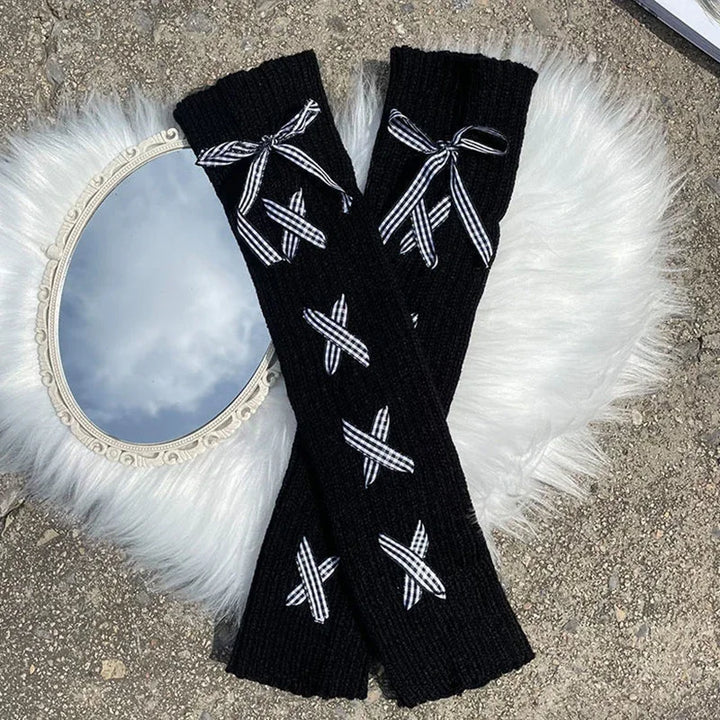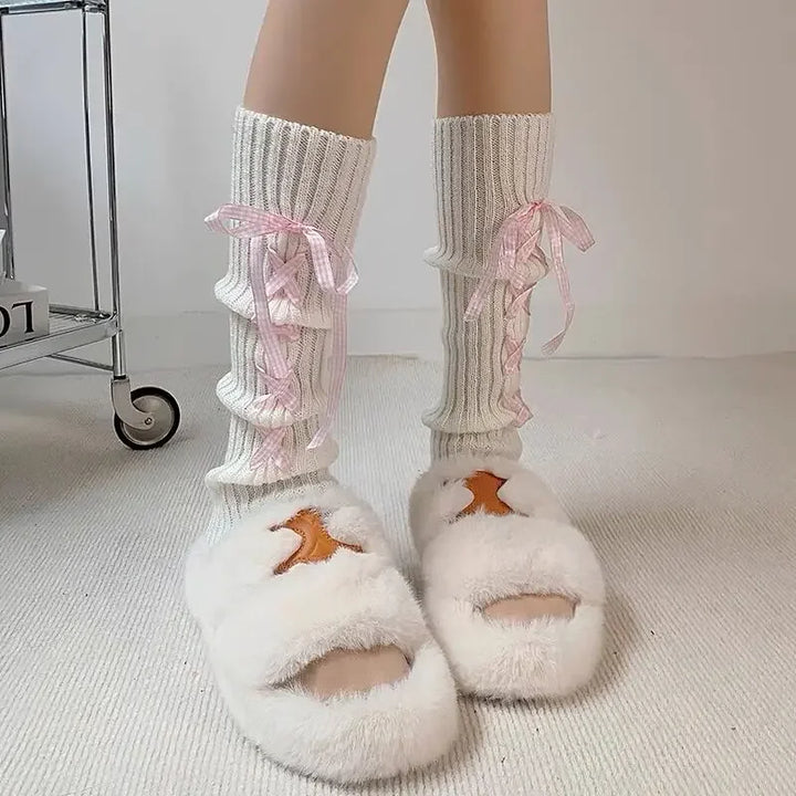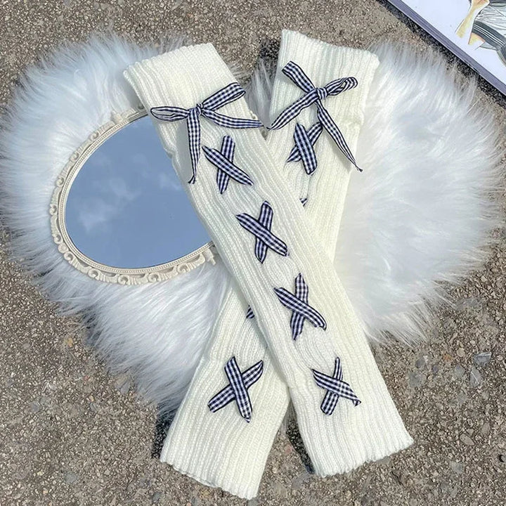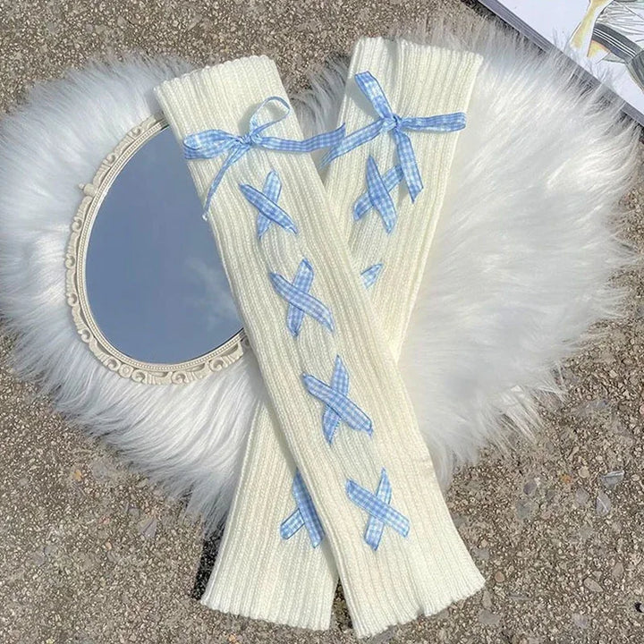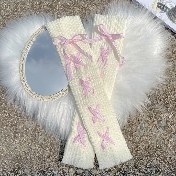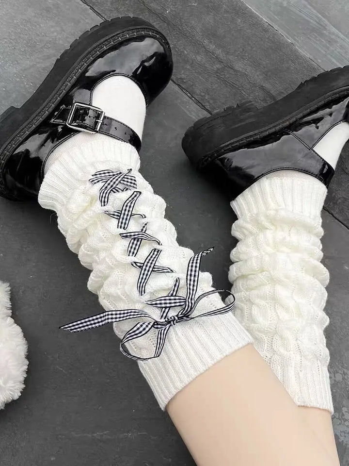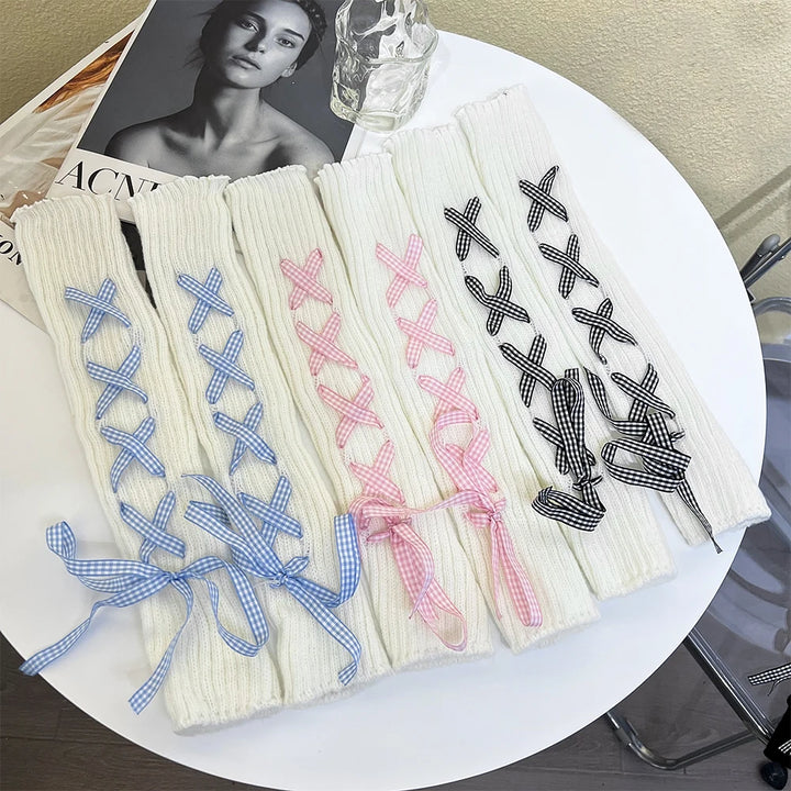 🌙✨ Knit Ribbon Lace-Up Leg Warmers – Soft Girl Coquette Aesthetic ✨🌙