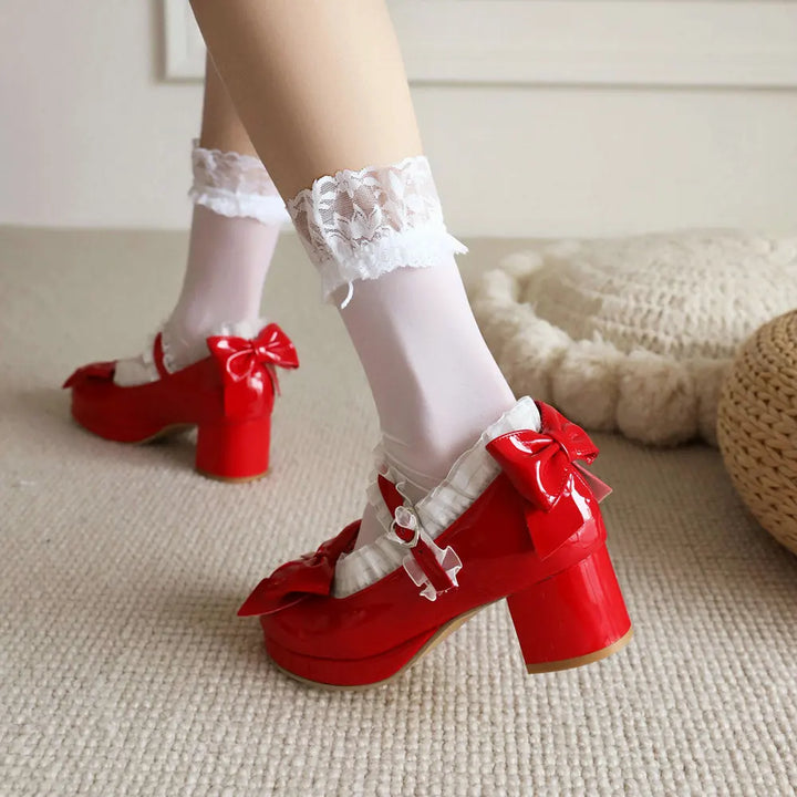 。.。:+* Style Tip *+:。.。 Pair them with lace socks or patterned tights to highlight the lace trim and bows! (。♥‿♥。) Whether you pick dreamy pastels or bold classic red & black, these shoes will make every step feel like a fairytale.