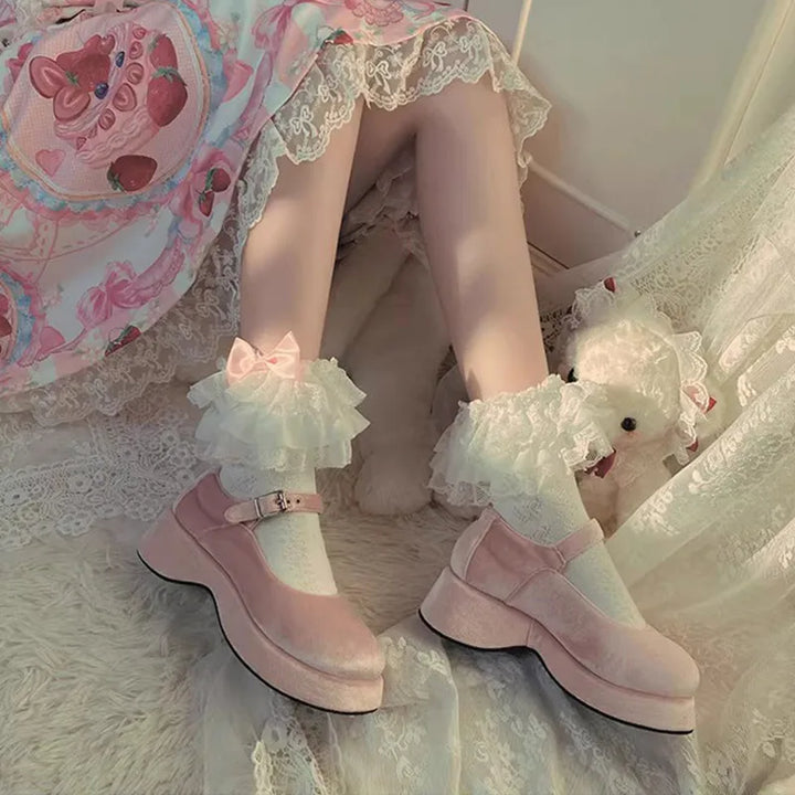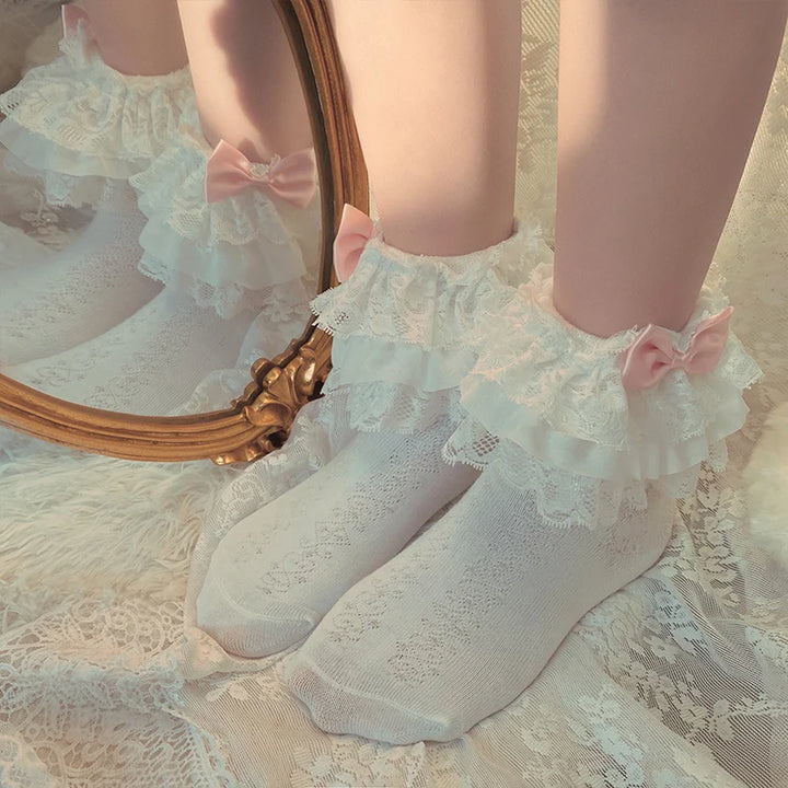 ₊˚⊹♡ Princess Lace Bow Ruffle Socks ♡⊹˚₊