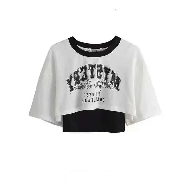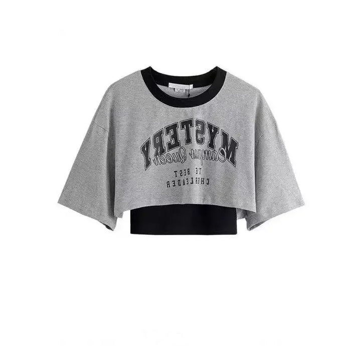 🩶 Streetwear-Inspired Style – Oversized cropped top with vintage lettering adds that cool urban vibe.