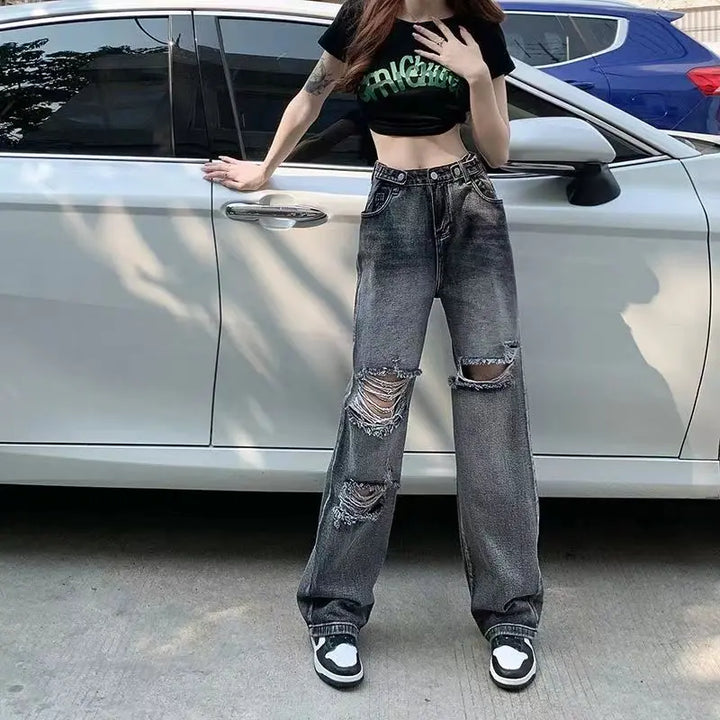 👖 Ripped Wide-Leg Jeans – High-waisted with distressed details and a relaxed fit that flatters all body types.