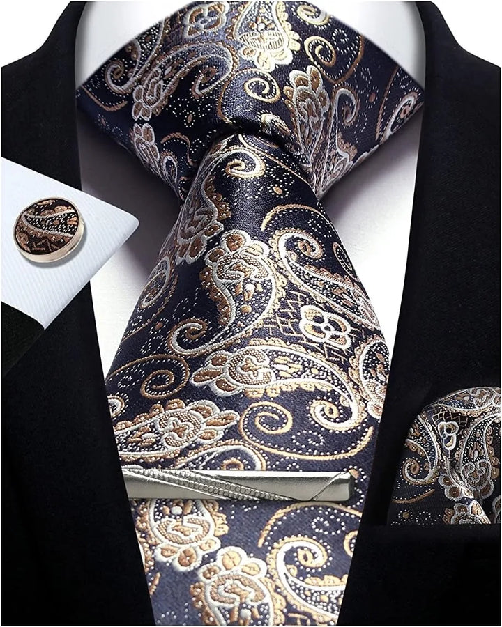 Step into timeless sophistication with our Regal Elegance Paisley Tie Collection β a luxurious lineup of ties featuring ornate paisley scrolls, shimmering textures, and jewel-toned colors. Each tie comes with matching cufflinks and a pocket square, making it more than an accessory β itβs a miniature statement of prestige (βΏβ βΏβ ) designed for those who want their outfits to radiate power and refinement.