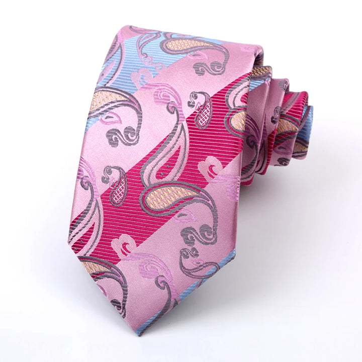 Step into a world of charm with our Rosé Reverie Tie Collection — a dazzling lineup of ties in romantic pinks, dreamy florals, and bold patterns. From soft blush tones to vibrant fuchsia stripes, these ties aren’t just accessories — they’re miniature statements of personality (✿◠‿◠) designed for those who love a playful yet polished style.