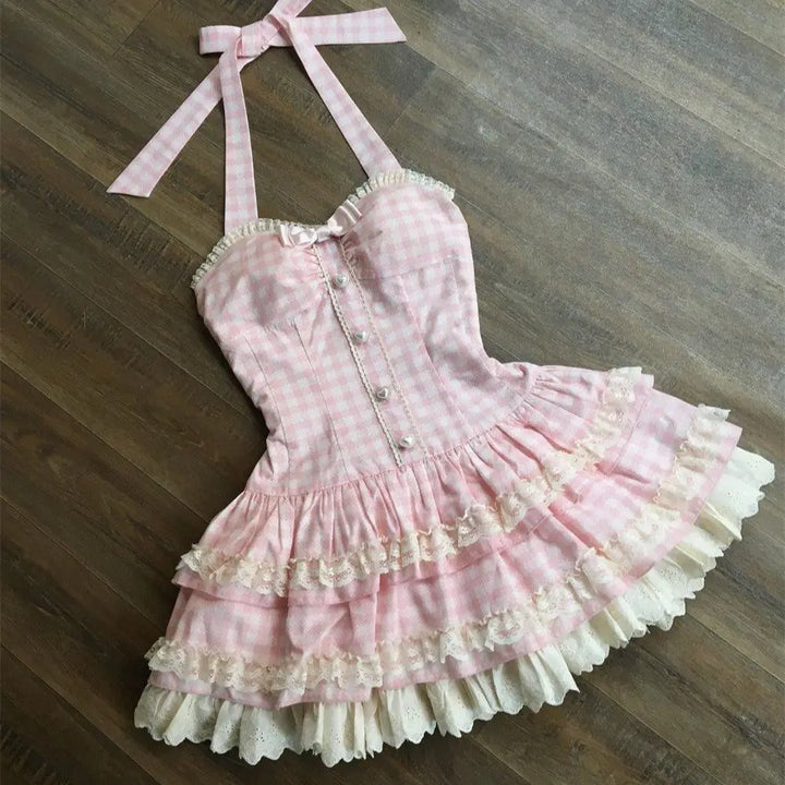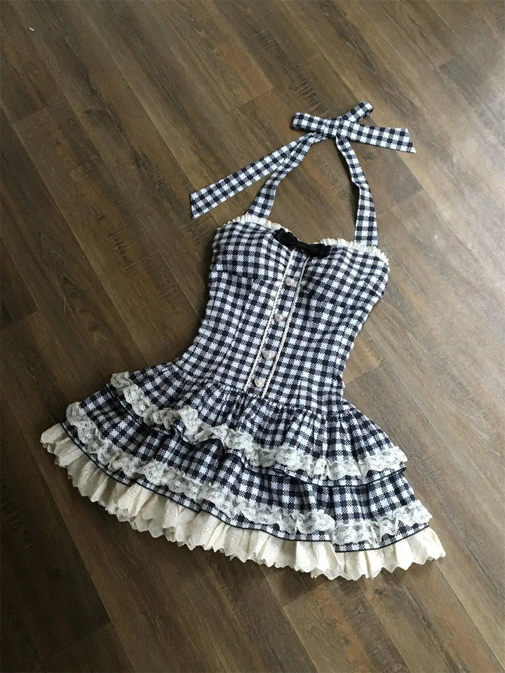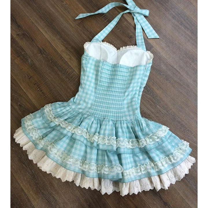 Step into your cottage-daydream with the Sweet Meadow Gingham Lace Dress (´。• ᵕ •。`) ♡ Soft, vintage, and irresistibly girly, this dress captures the essence of a countryside romance with a touch of coquette charm. Its fitted corset-style bodice, bow-tied straps, and layered lace hem make it a must-have for anyone who adores feminine silhouettes and fairytale details. Perfect for sunny café afternoons, picnics among wildflowers, or just twirling around your room while feeling pretty ✿