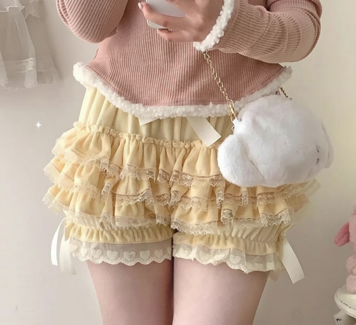₊˚⊹♡ Sweet Ruffle Lace Bloomers Shorts ♡⊹˚₊
