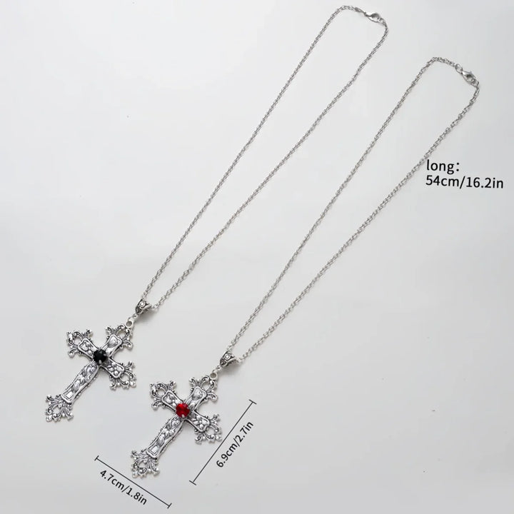 Step into gothic elegance with this Vintage Metal Cross Necklace, featuring an ornate silver-toned design with intricate carvings and a striking gemstone accent at its center. Whether styled with gothic fashion, vintage-inspired looks, or as a bold statement piece, this pendant captures timeless mystique and divine allure. (✧ω✧)♡