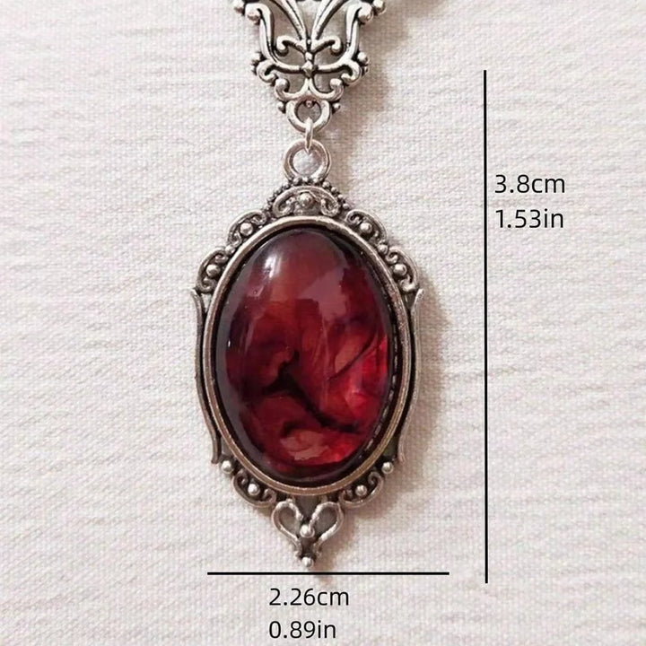 (ノ´ヮ`)ノ*: ・゚✧ This necklace is more than an accessory—it’s a statement piece. With its rich crimson stone and ornate frame, it channels a sense of gothic romance and timeless beauty. Whether you’re dressing for a special occasion or elevating your daily style, it’s the perfect finishing touch.