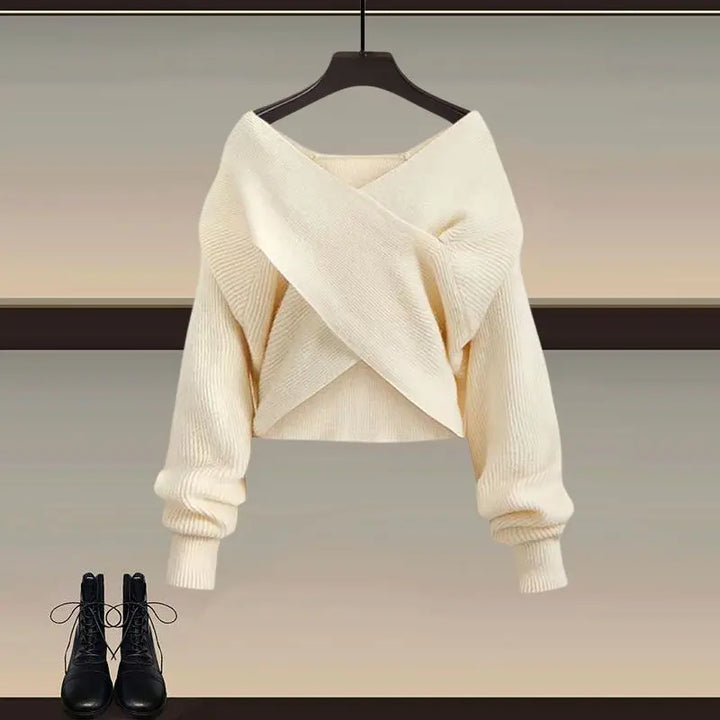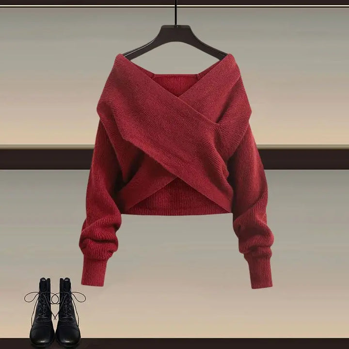 🧶 Soft Knit Fabric – The sweater features a cross-wrap design and plush texture, keeping you warm while highlighting your neckline.