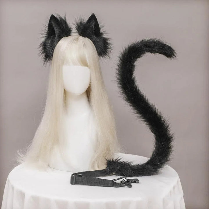 🖤 Fluffy Kitty Ears & Tail Cosplay Set 🎀✨
