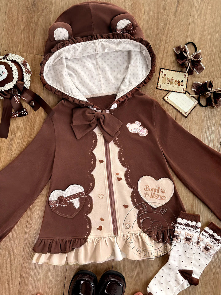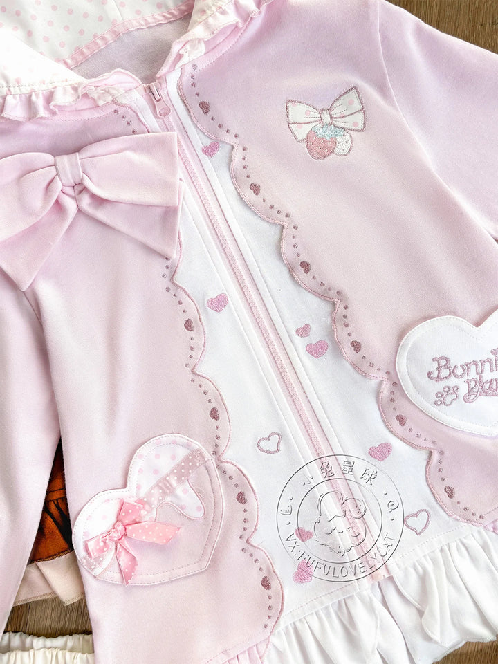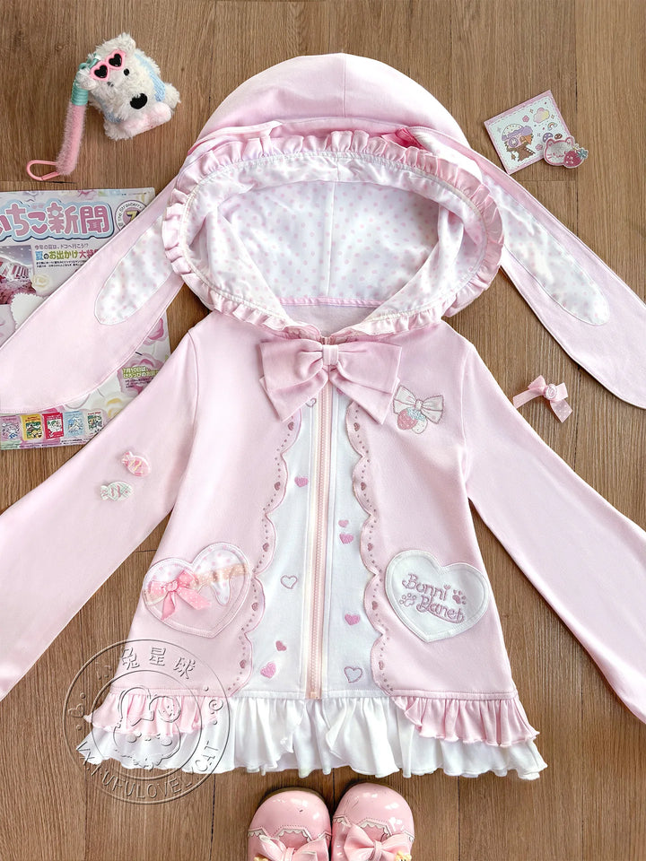🍫🐰 Sweet Bunny Frill Hoodie – Soft Girl / Kawaii Pastel Zip-Up 🍓✨
