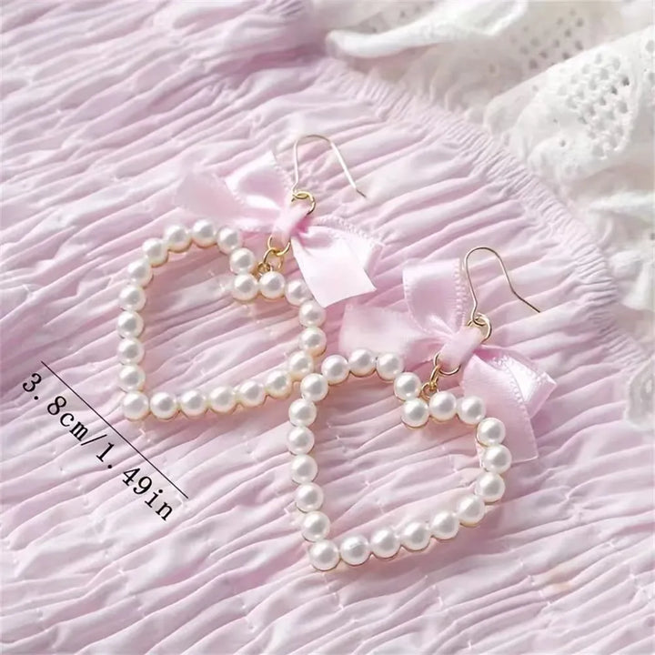 ₊˚⊹♡ Sweet Pearl Heart Bow Earrings ♡⊹˚₊