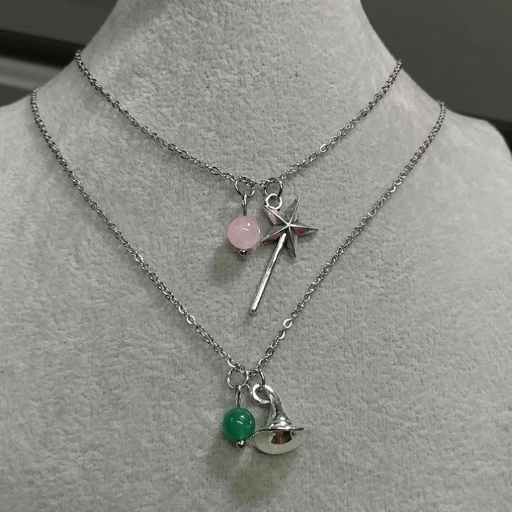 Wicked Duo Charm Necklace Set - Elphaba / Glinda Edition