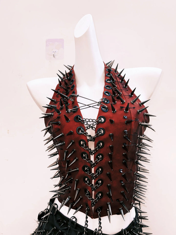 Turn every room into your stage with the Bloodthorn Spiked Punk Queen Outfit Set, a ruthless fusion of metal, leather, and attitude. This set is designed for those who don’t follow rules — they break them.