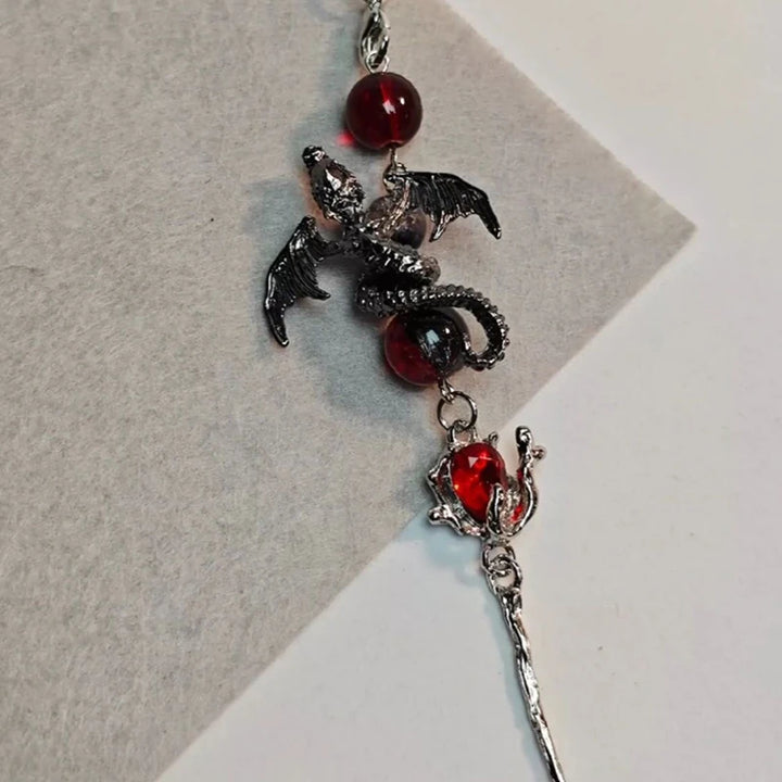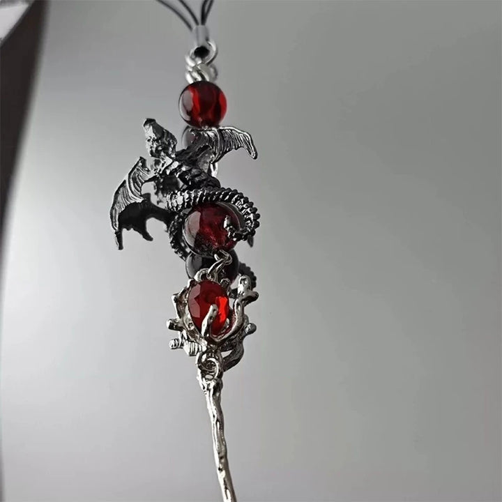 • 🐉 Dragon-themed phone chain – intricately detailed charm with crimson beads