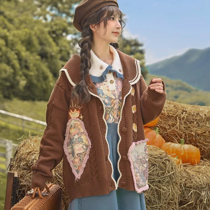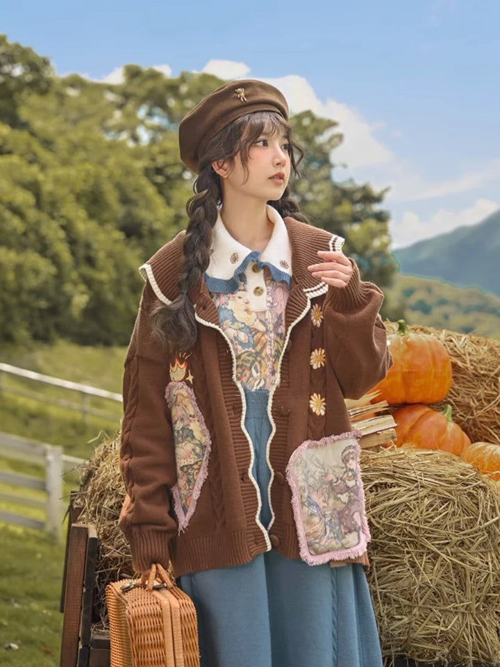 Warm, storybook-sweet, and bursting with rustic charm, this cardigan is the perfect layering piece for anyone who loves cottagecore, farm-girl aesthetics, and soft autumn vibes. With its scalloped trim, patchwork sheep panels, and cozy knit texture, it feels like stepping straight into a gentle countryside fairytale. (˘͈ᵕ ˘͈♡)