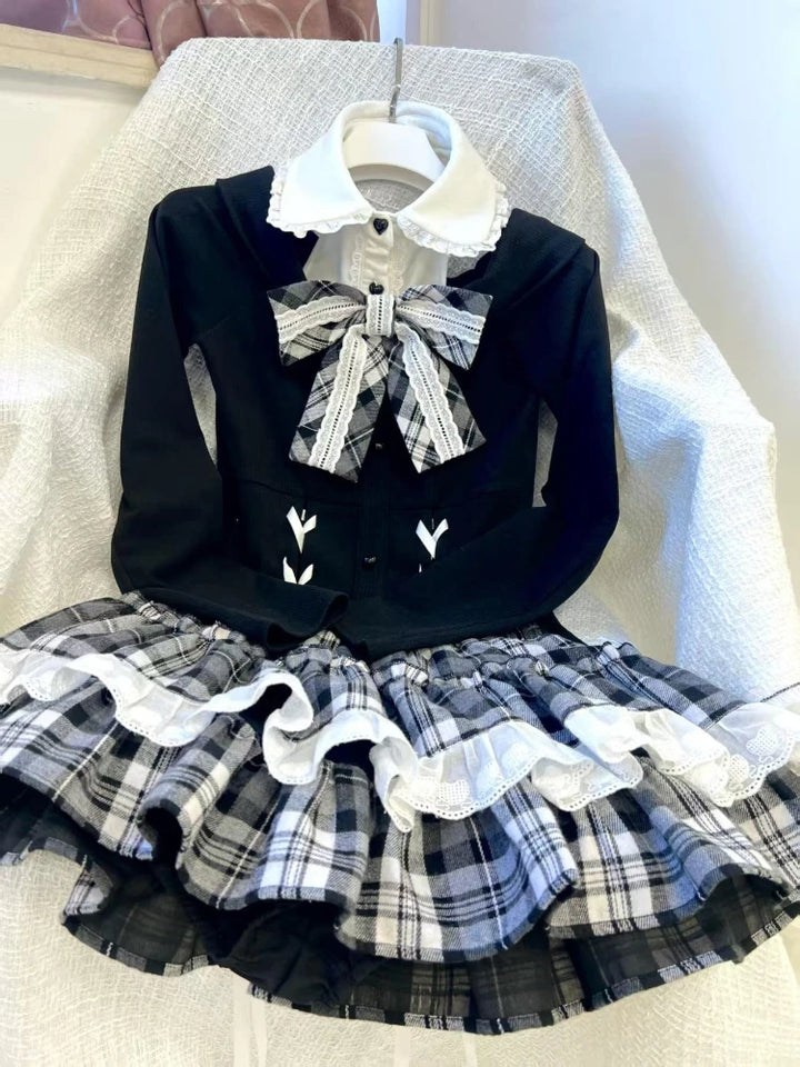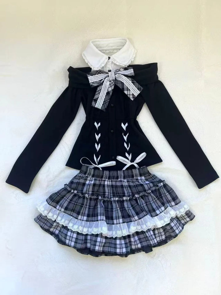 ✦ Gothic Academia Plaid Ribbon Outfit Set ✦