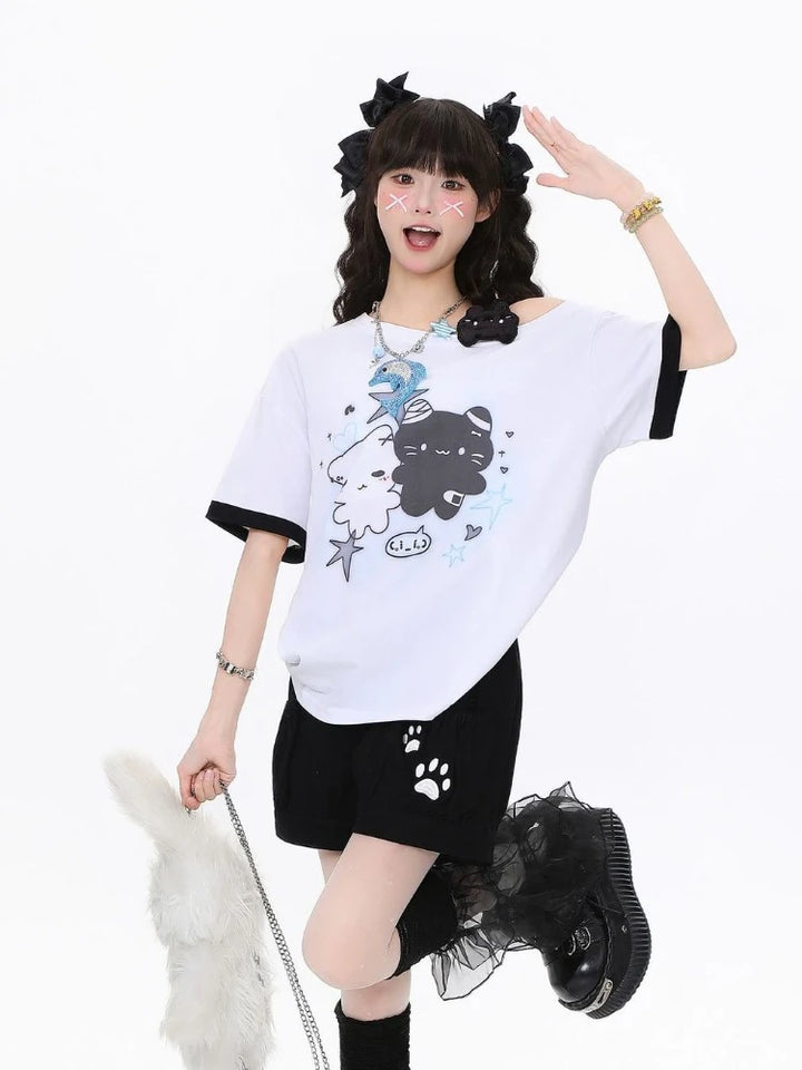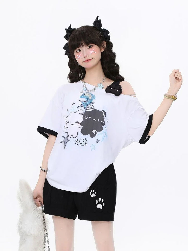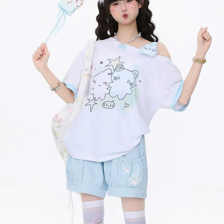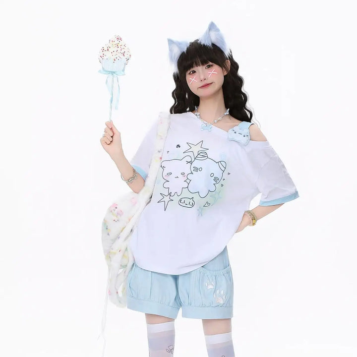 Soft, relaxed, and sprinkled with dreamy pastel charm, this oversized tee is the perfect everyday piece for anyone who loves sweet, playful kawaii vibes. With its adorable bear duo print, comfy loose fit, and soft-girl aesthetic details, it instantly becomes a staple in any cute-core wardrobe. (๑>ᴗ<๑)♡