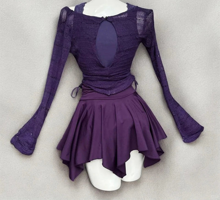 • Witchy Gothic Elegance – Deep purple corset-inspired top with lace detailing and flattering cut-out back.