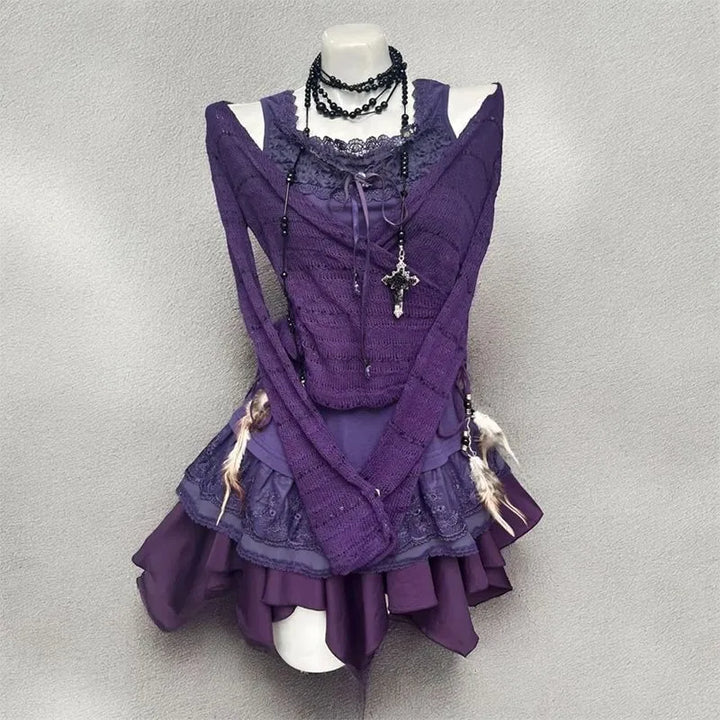 (ノ≧ڡ≦) ✦ This outfit feels like stepping into a spellbound forest at dusk. From its corset lace accents to its flowing ruffled layers, every detail was made to enchant. Perfect for witches, fairies, and gothic dreamers who want to capture pure amethyst magic in their wardrobe.