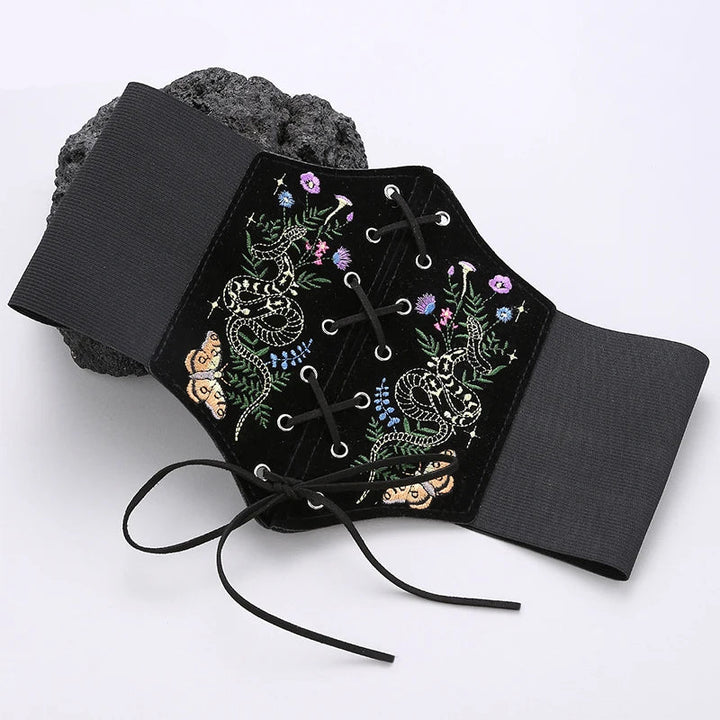 Enchanted Serpent Embroidered Velvet Corset Belt