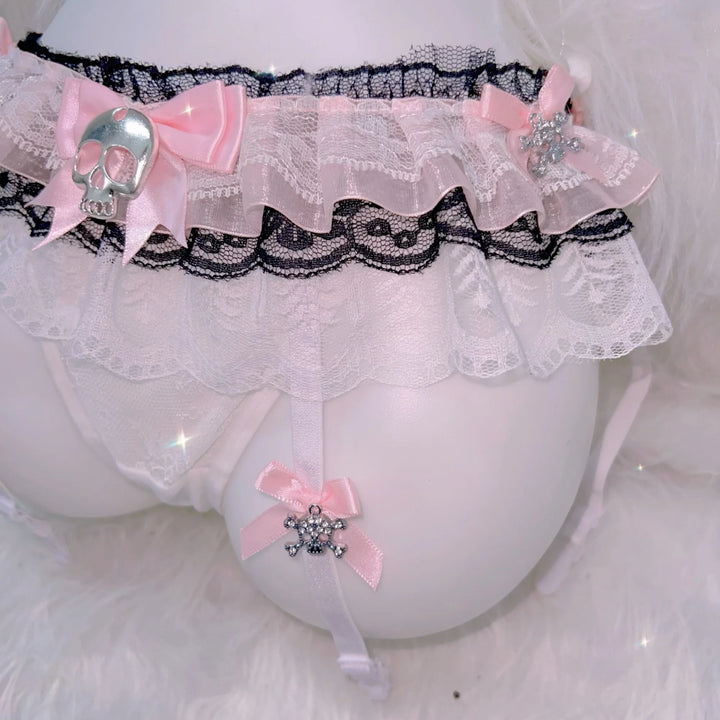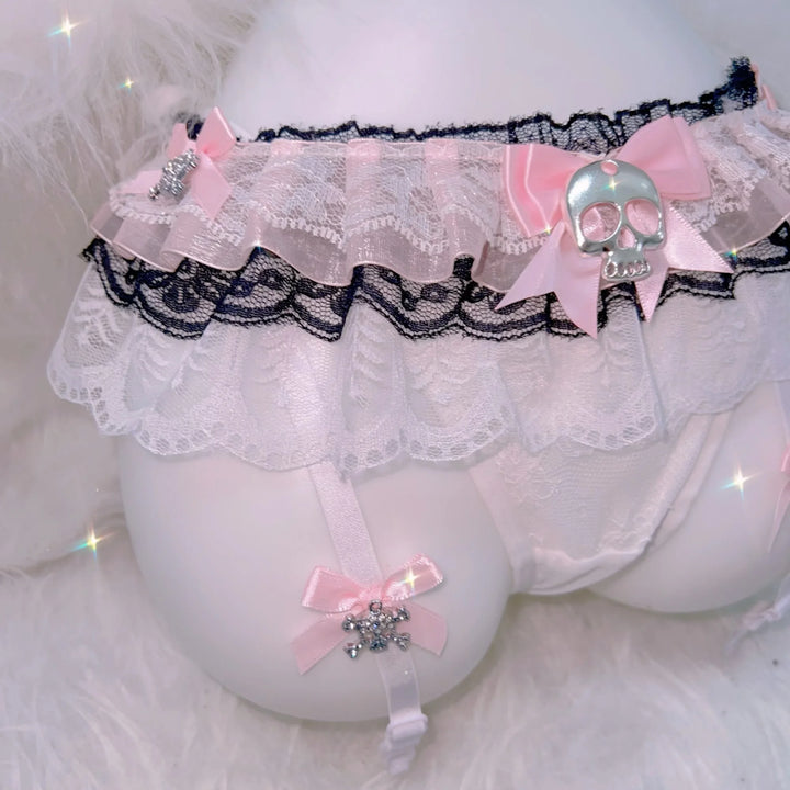 🌸🖤 Lace Goth Princess Skull Bow Panty ✧°·
