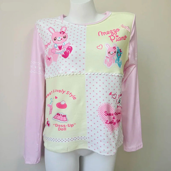Step into pure nostalgia with the Pastel Patchwork Bunny Long Sleeve Top, a whimsical piece brimming with soft colors and playful charm. With its dreamy mix of pink, cream, and pastel yellow panels, this top gives off a hand-crafted, patchwork feel that’s perfect for collectors of kawaii and Harajuku-inspired fashion.