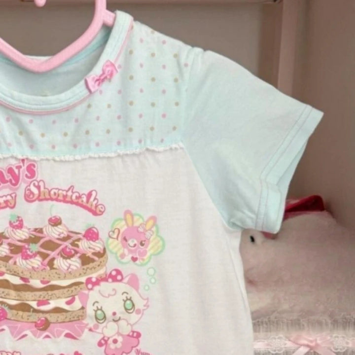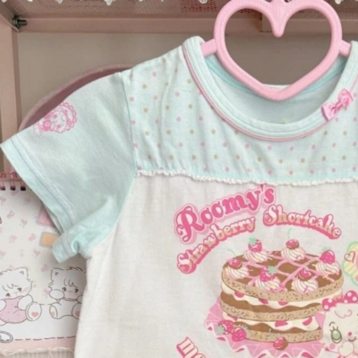 🍓🎀 Roomy’s Strawberry Shortcake Pastel Tee – Kawaii Vintage-Style T-Shirt 🎀🍓