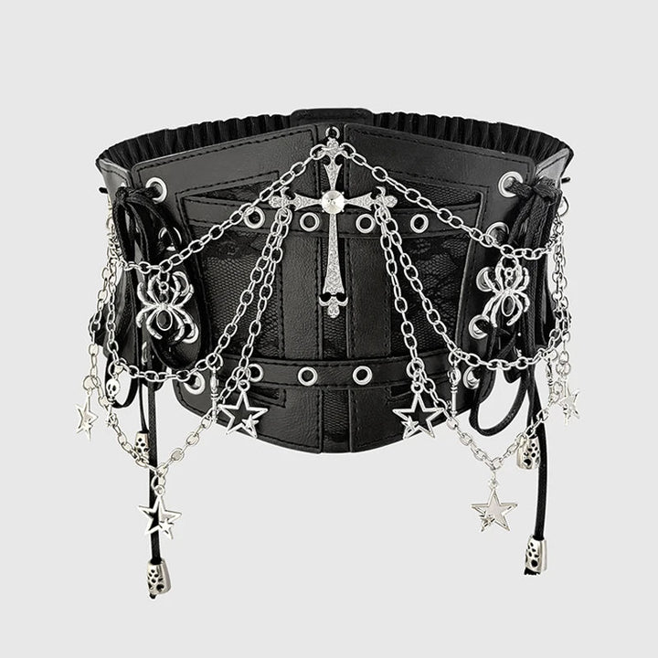 💀 Starlit Chains Gothic Waist Corset Belt ✨🖤