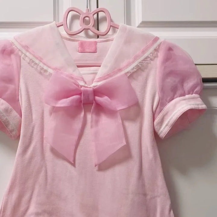 💞 Sailor Collar with Lace Detail – A delicate and nostalgic coquette finish.