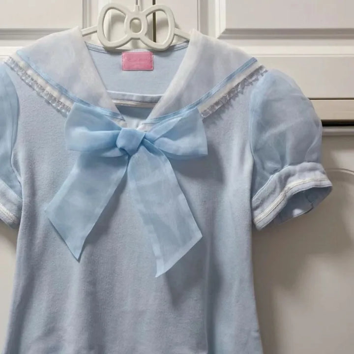 Sail away into cuteness with the Sweet Sailor Puff Sleeve Top ♡₊˚。 This dreamy piece captures the essence of classic Japanese sailor fashion — infused with a soft coquette twist. With its puffed sleeves, frilled hem, and large organza ribbon bow, it’s perfect for those who adore timeless dollette charm and pastel elegance (´。• ᵕ •。`) ♡