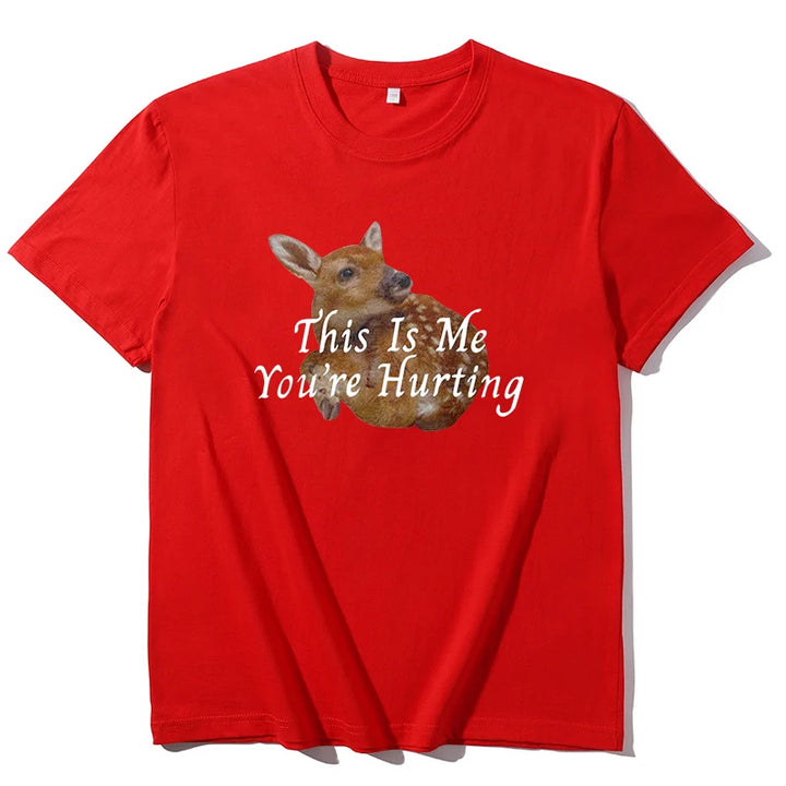 A cute-but-emotional tee for anyone who loves fawn aesthetics with a touch of attitude. This soft cotton shirt features an adorable baby deer paired with the iconic phrase “This Is Me You’re Hurting,” giving it a mix of kawaii, grunge, and meme energy.